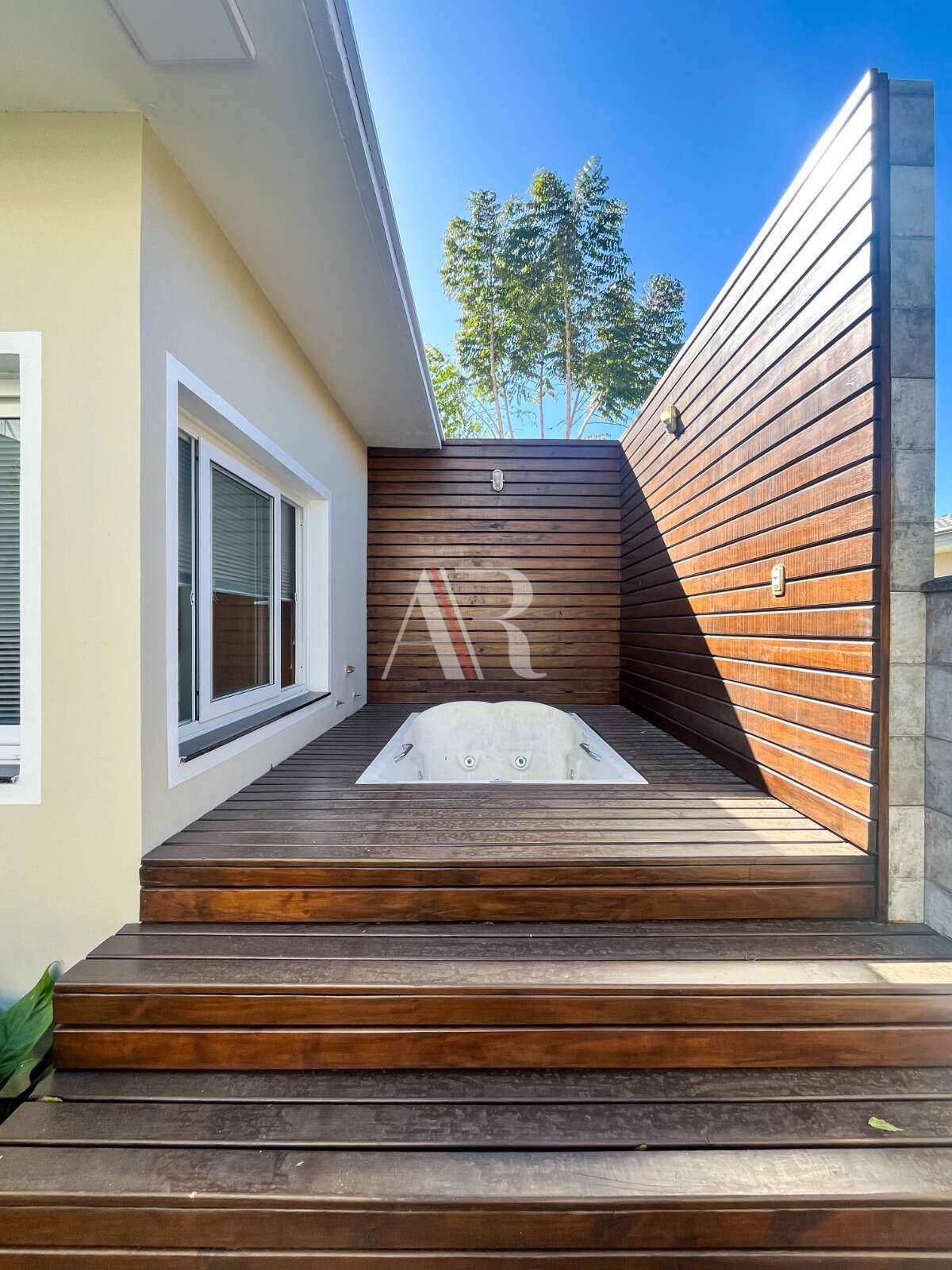 Nos fundos, uma edícula individualizada complementa o conforto: equipada com sala, banheiro e dormitório, pode ser utilizada como espaço de festas, escritório particular ou até mesmo suíte independente para hóspedes.